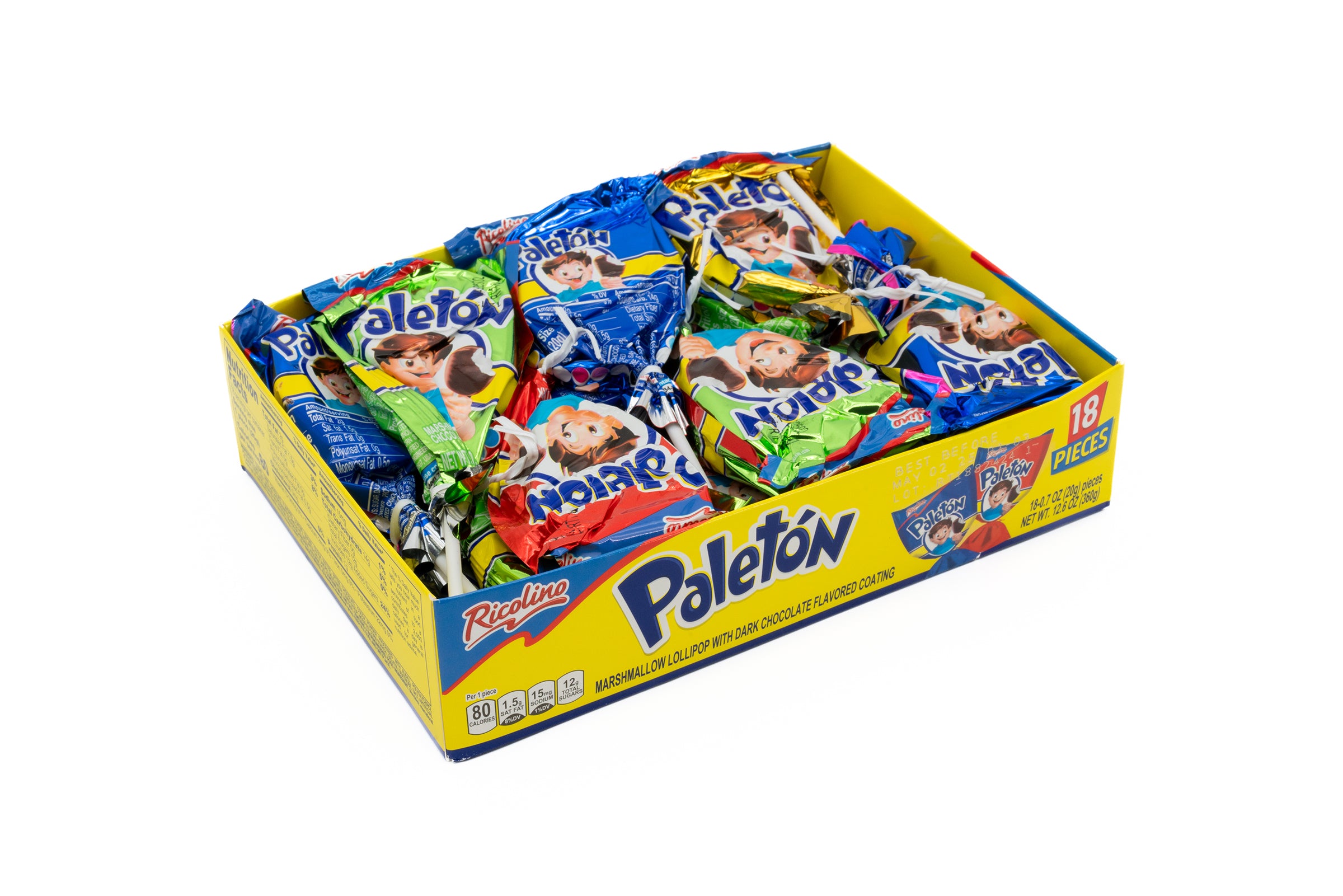 A traditional Mexican lollipop with a soft, fluffy marshmallow coated in milk chocolate.  A chocolate-covered marshmallow on a stick.