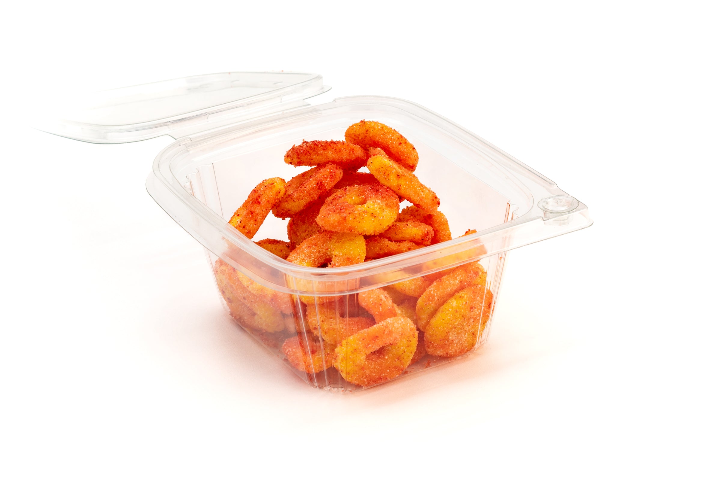 A Mexican candy combining sweet peach rings with tangy, spicy chamoy.
