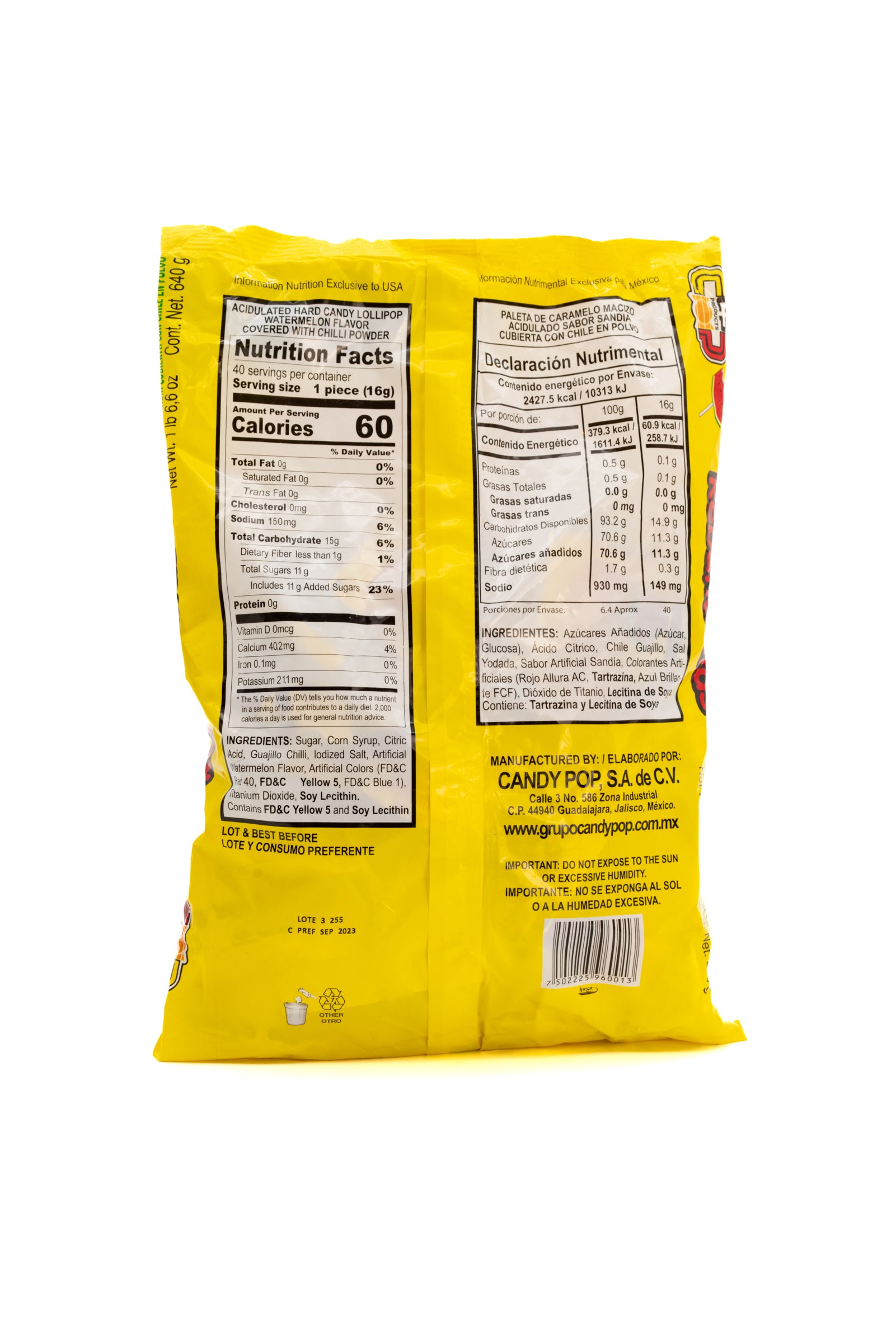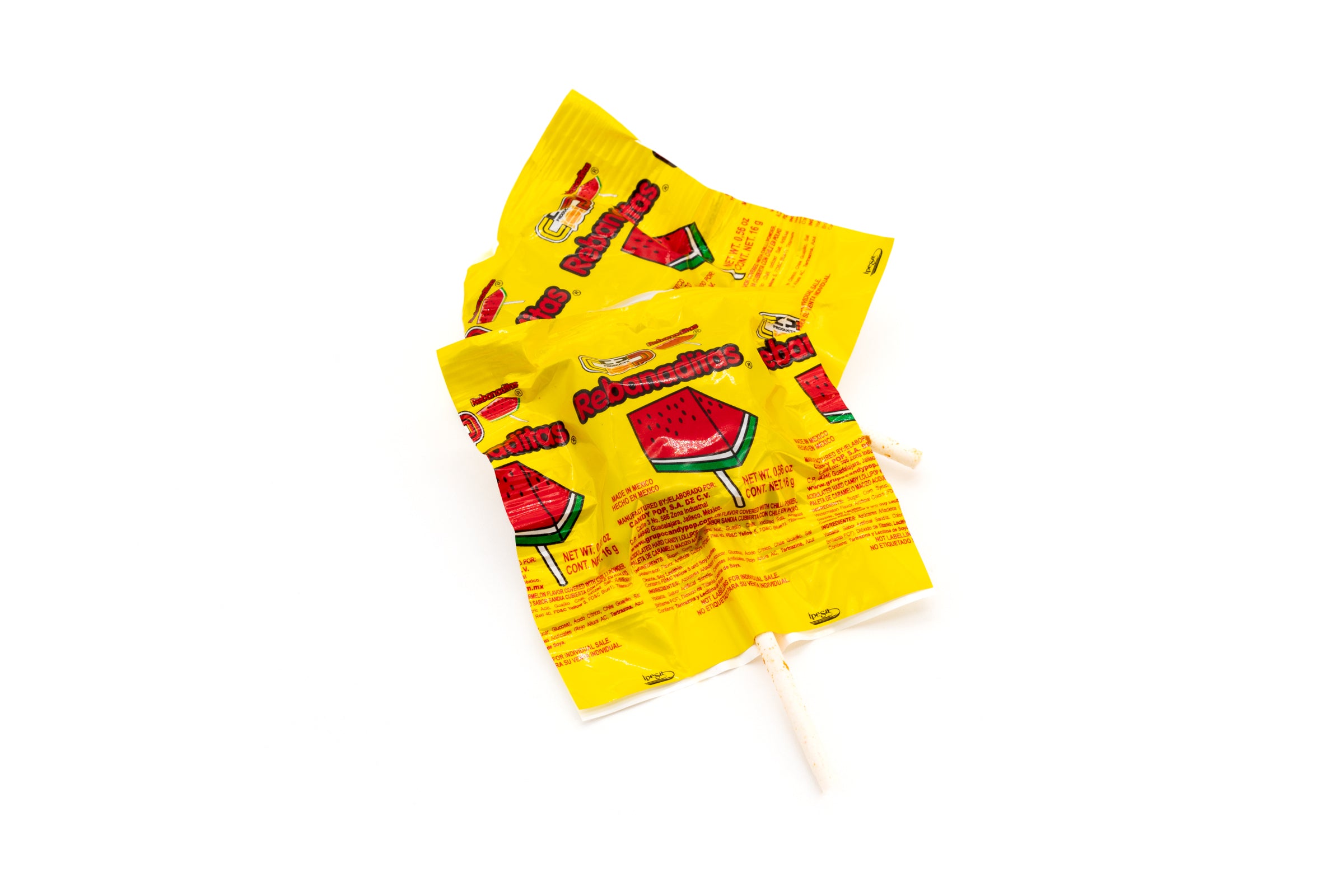 Watermelon-flavored and shaped Mexican candy coated with chili powder.