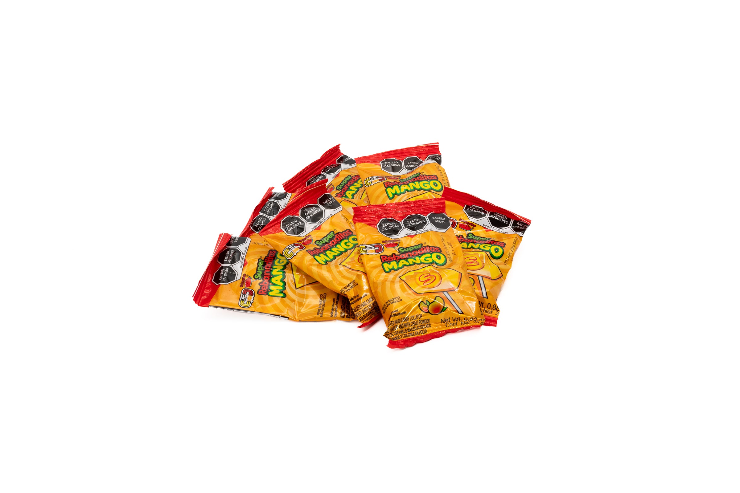 A Mexican mango lollipop coated in chili powder. Sweet mango flavor with a spicy kick.